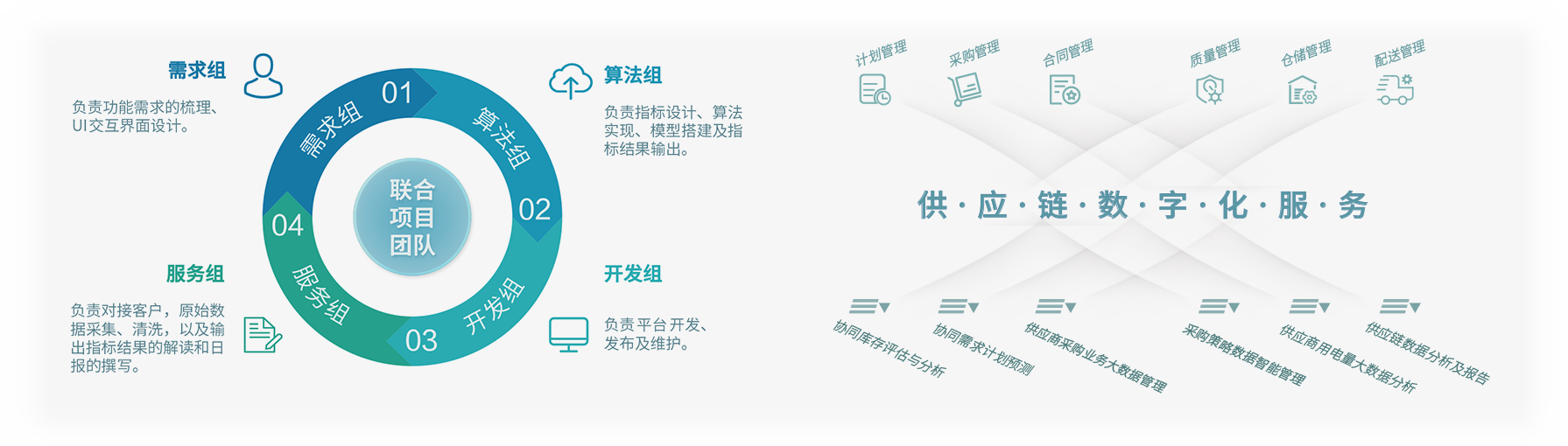 以“業(yè)務(wù)+技術(shù)”的工作模式,派駐數(shù)字化服務(wù)團(tuán)隊(duì)與客戶開展聯(lián)合辦公,通過提供業(yè)務(wù)診斷、工具開發(fā)、數(shù)據(jù)清洗、模型訓(xùn)練等服務(wù),幫助客戶將物聯(lián)網(wǎng)、人工智能、大數(shù)據(jù)分析等前沿技術(shù)嵌入其核心業(yè)務(wù)流程,助力客戶企業(yè)以更快速度、更大規(guī)模推動供應(yīng)鏈發(fā)展與變革。